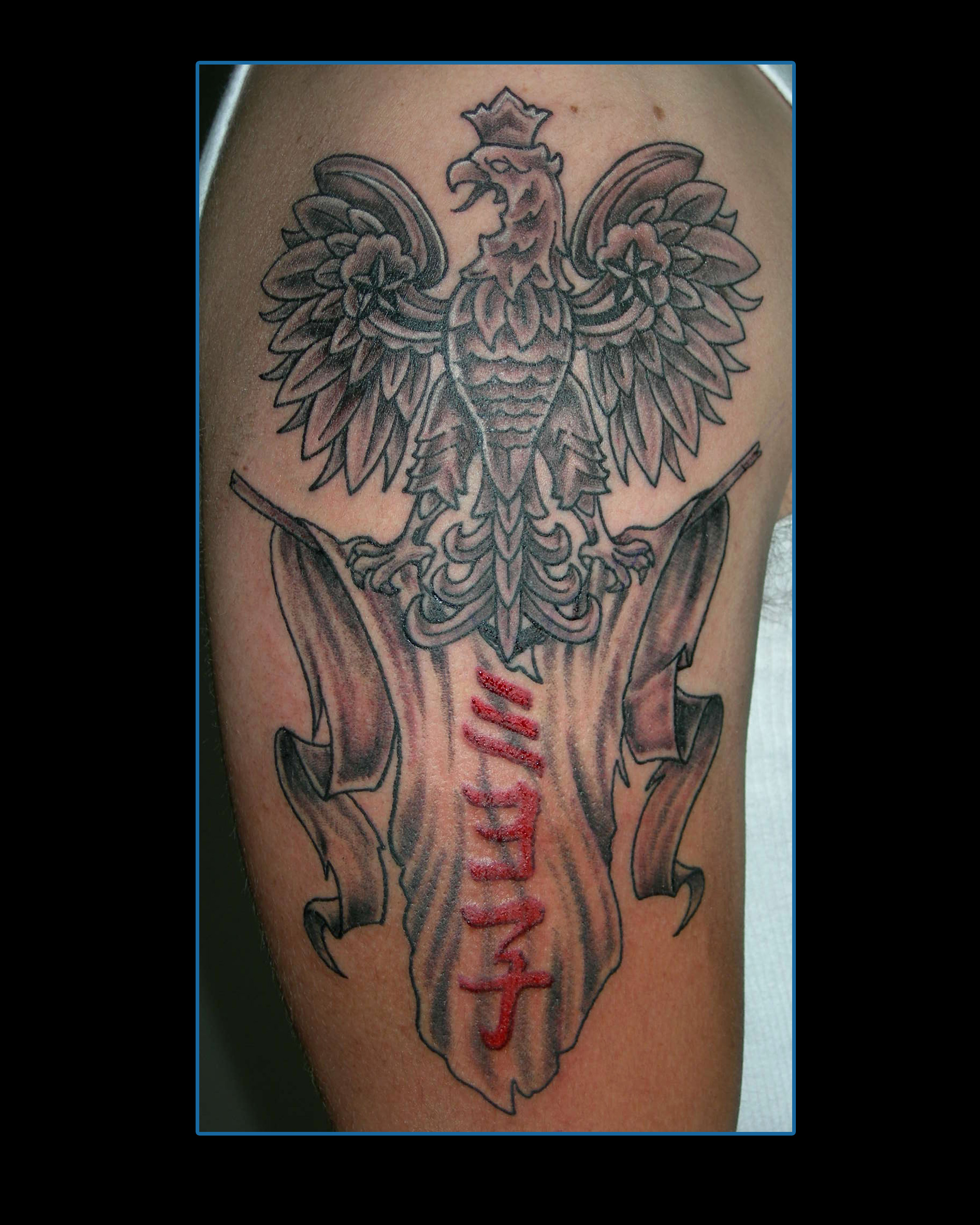 A polish eagle tattoos design on arm.